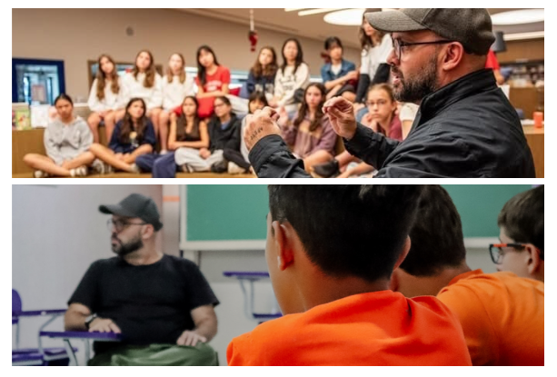Agora, tem uma coisa que gosto muito (e acho importante demais quando pensamos em literatura para juventudes) que é conversar com os leitores. Antes de tudo, a gente precisa escutar os jovens e entender o que sentem, o que buscam. Aí conseguiremos fazer histórias que conectem – e isso é o mais importante. Eu, como escritor, preciso entender o que eles buscam, o que está passando no coração deles. Então, encontros com os jovens, como costumo fazer bastante em escolas, são sempre fontes de inspiração.